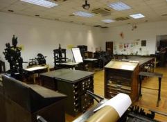 On we go to a room full of old printing presses – the Print Workshop. Wholly absorbed by an old lithographic stone – how can anyone have produced such light and delicate printing from something so weighty and improbable? On our day out, everyone who books in advance will have an opportunity to hand-set type and print on one of the presses, or print a wood engraving on one of the nineteenth-century presses. Such fun!
