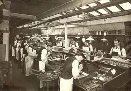Rob’s engaged in writing a history of Sangorski & Sutcliffe, founded in 1901 by Francis Sangorski and George Sutcliffe, who met at bookbinding evening classes taught by Douglas Cockerell at the London County Council’s Central School of Arts and Crafts. Within the next few years they became probably the most famous bookbinders in the world.