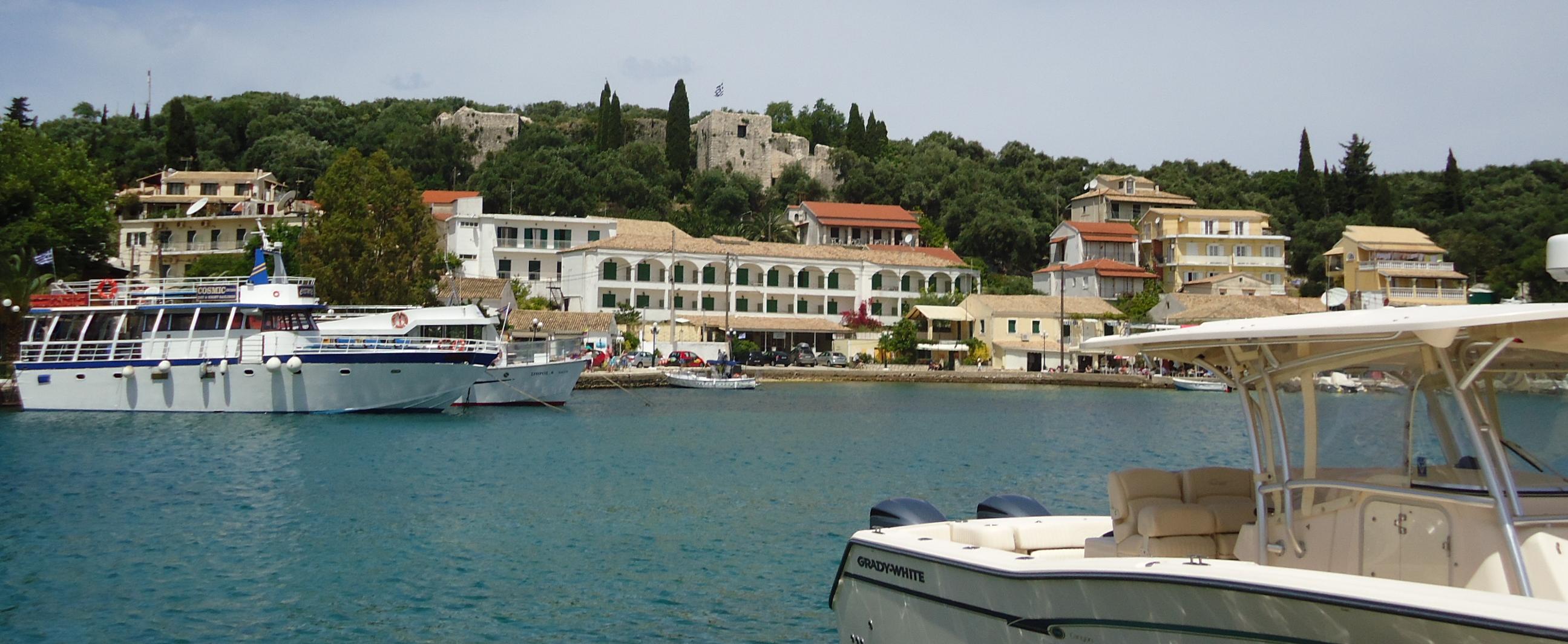 Greetings and hugs from old friends at the taverna down by the sea – a glass of retsina soon to hand. Time to enjoy. Days of idleness. We don’t do much at all, as we let the stresses ebb away. Swimming at dawn in the sea – at least for me – Anne bizarrely prefers the pool in the heat of the day. A trip up to the historic harbour at Kassiopi one day, sheltering beneath the old Venetian fortress.