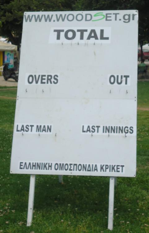 I stroll out to inspect the pitch (as one does). I suspect I’d rather bat than bowl on this artificial mat, especially with those short boundaries square of the wicket. The threat to the parked cars and the line of cafes along Kapodistriou Street (Liston Square) would have the game banned in an instant by health-and-safety muppets over here.