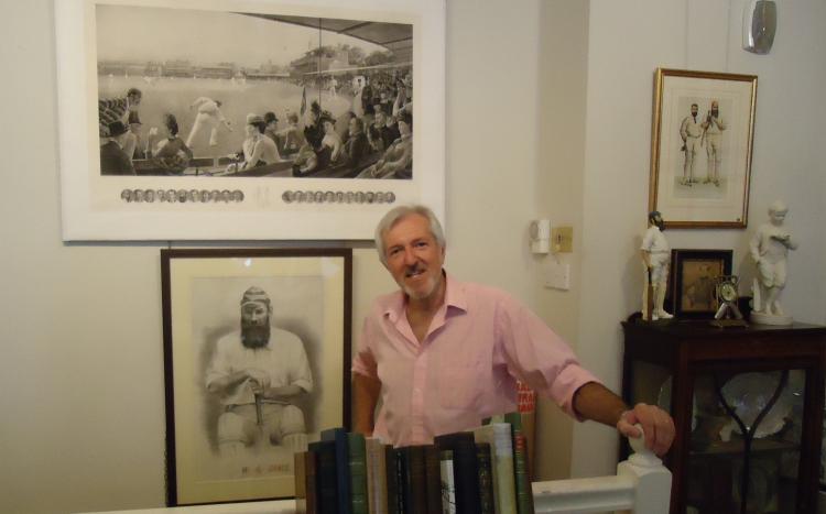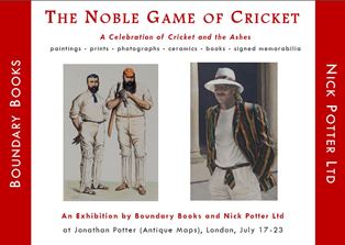 “Having a day off?”, enquired Jonathan Potter, going on to add that now I worked from home he supposed every day was a day off. I take his point, but that’s not quite how I see it: the sad and dismal truth is that if you work from home then every day is a day at work. But there’s work and there is work. What I was actually doing swanning around his admirable map-gallery on George Street (just off Baker Street) and thoroughly enjoying myself was attending the launch of a special exhibition put on by his brother, Nick Potter, in partnership with Michael Down of Boundary Books. Nick has been dealing in sporting art and memorabilia for thirty years or so, while Michael has been a cricket specialist – books, manuscripts and ephemera, with some publishing too – for almost as long.