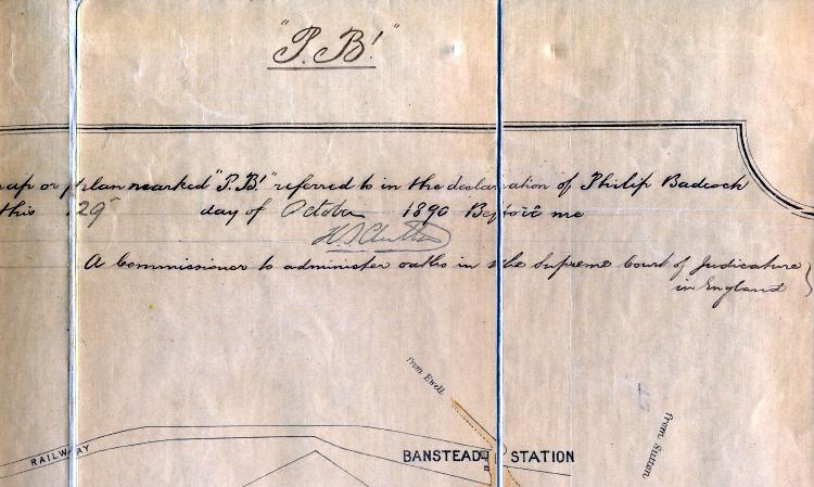 Lot 18 lies hard by the spot where Tattenham Corner Station now stands. There were negotiations all through the 1890’s about building it and as to how to connect it to the rest of the railway system. When opened in 1901 it was as the terminus of a somewhat illogical backward-turning diversionary loop. The far more obvious direct link to Epsom Downs Station just to the north was never put in place. Imperfectly erased pencilled lines and notes on the map (almost certainly recoverable with the aid of technology) sketch out alternatives. Philip Badcock (1832-1917) was a London land-agent and surveyor. What I suspect is that either on behalf of a client, or more probably on his own account, Badcock was simply gambling on a speculative windfall. However the railway went, if it were to be built, Lot 18 was going to be the vital key for access.