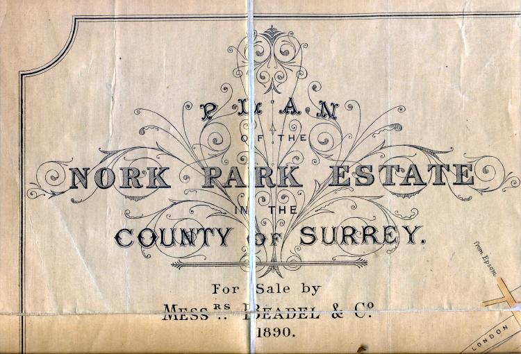 Result of Sale. THE NORK PARK ESTATE, Banstead and Walton-on-the-Hill, Surrey … BEADEL & CO. beg to announce that at the Auction on Monday last, Lots 8, 9, 10, 15, 17, 18, 20, 21, 22, 24, and 26, comprising in all about 350 acres were sold. The following portions of the estate were not sold, and may now be treated for by private contract: Lot 1. – The Mansion, and nearly 1,400 acres in a ring fence, 1,165 of which are let, and the remainder, comprising park woods and home farm, in hand. Lot 2. – Corner Farm; 321 acres ; let on lease. Lots 3 to 6.—Farms of 42, 60, 114, and 84 acres respectively, all let. Lots 7, 11 to 16, 23, and 25.—Cottages, accommodation land, and allotment ground. Lot 19.—Ten acres, building land, with large frontage to the high road from Epsom to Banstead, a few minutes’ walk from the latter station …”.