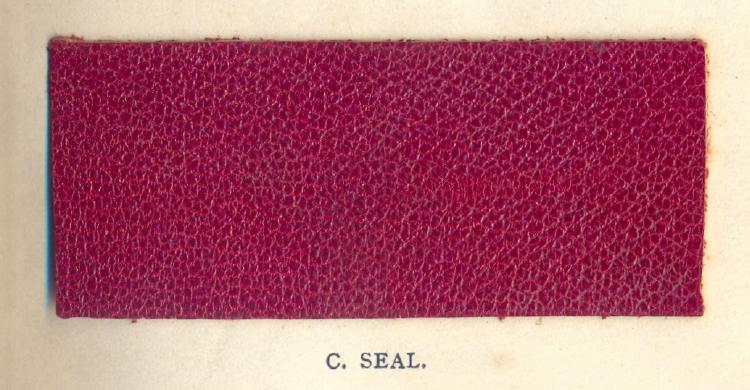 There are currently only two examples of sealskin bindings in the British Library Database of Bookbindings – one a handsome Cobden Sanderson of 1914, the other a stunning Lilian Simpson art-nouveau effort from 1896, this largely covered by silver plaques and with a warning note that other authorities have described it as goatskin. But that sealskin was actually in considerably wider commercial use is attested by there being a sample of it (alongside pigskin, oasis and a host of other binding materials) in Henry T. Coutts and George A. Stephen’s “Manual of Library Bookbinding” (1911) – a real sample that you can touch, stroke and smell (try doing that on your Kindle). Here’s what they say: “Sealskin has strong tough fibres which make it a strong leather, capable of resisting hard rubbing wear; its toughness is at least equal to the best goat, while its suppleness is superior to that excellent leather, inasmuch as it contains a good quantity of natural oil. It is very agreeable to the touch, and the grain has a unique lustre which enhances the appearance … Sealskin is very economical in use, as practically the whole skin possesses the same texture, there being no drawbacks of soft flanky or belly parts as in goat. There is some difficulty in obtaining a good supply of undamaged skins, but the price of seal is below that of the best grades of morocco …”.