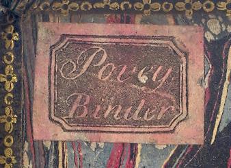“Povey, Binder” says the little pink label on the front pastedown. And just look at those beautiful marbled endleaves – a style I think known as Stormont and very much the dernier cri in the early years of the nineteenth century. I say a known binder, but in this case perhaps half-known would be more accurate: so far we only have a surname. But then I like half-known – I like the scope it offers to do a little delving and fleshing out of the record. The usual sources are reticent. There is nothing by Povey in the British Library database of bindings – and in fact there are only three illustrated examples of English masonic bindings in all, which I find odd in that for so long this was a highly distinct and decorative genre of binding. Ramsden notes only that he had seen a ticket reading “Bound by Povey,Wotton” on a half calf binding on a book dated 1802, identifying this, wrongly as it turns out, with the small Buckinghamshire village of Wotton (or Wotton Underwood as it is now more usually known). Beyond that, Maggs Bros. offered an 1815 book bound in tree calf by Povey & Bailey of Wotton in their 1996 catalogue of Bookbinding in the British Isles : Part One (item 222).
