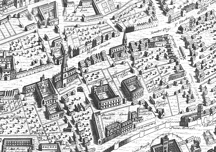Detail from the Ralph Agas wall-map of Oxford (1588).