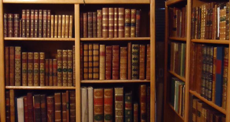 It’s also apparent that the books here are confined to the book-room and haven’t seeped, leaked and crept out into very corner of the house (fourth point of invidious comparison). Philip and I fall into chat about old days and new ways, the way booksellers do: respective memories of Hodgson’s in the seventies; the importance of really listening to customers – learning more from them than they will ever learn from you; selling books then and selling books now. The importance and apparently overwhelming need of customers to have a photograph of everything now, as if the expert words and advice of an experienced cataloguer are somehow no longer enough. If Philip were to tell me that something was a beautiful copy in a contemporary binding, why would I need a whole suite of photographs to prove it? – that’s what it will be. And there are great practical difficulties in actually photographing books, or at least in photographing them well – this is not easy even for professional photographers. Philip’s camera is of course much better than my little point-and-click contraption (fifth point of invidious comparison)– the sort of camera that looks as if you might need a Ph.D. in photography just to turn it on. And he appears to know all about Photoshop (or at least his daughters do) – sixth point of – well, you know, I’ve stopped counting by now – this is becoming chastening.