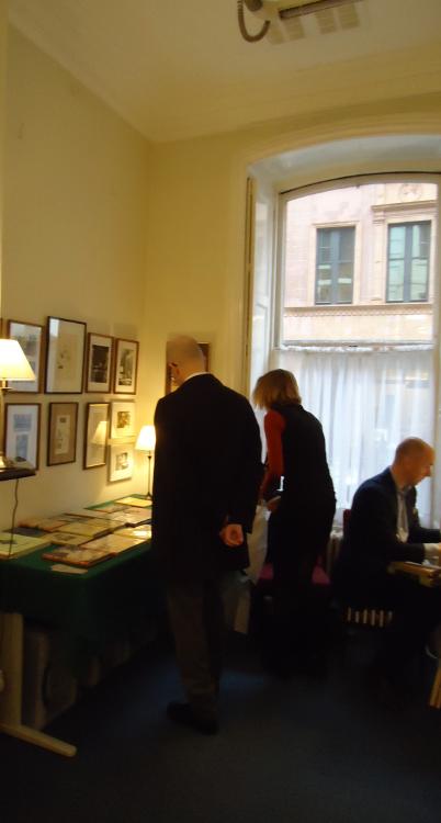 Anthony has now decided to draw on all that accumulated knowledge and experience to start up on his own – Anthony Smith Books. He’ll work from home and online, issuing catalogues, but he’s always been a bookshop bookseller and he’s started his new venture with the vogueish experiment of a pop-up bookshop. I found him this morning in rather august surroundings – the front room of 50 Albermarle Street – the home of course of the publishing house of John Murray since about 1812. The very house in which Byron’s unpublishable memoirs were burnt in the fireplace upstairs, the very house of the publishers of Jane Austen, Samuel Taylor Coleridge, David Livingstone, Charles Darwin and so many more besides.
