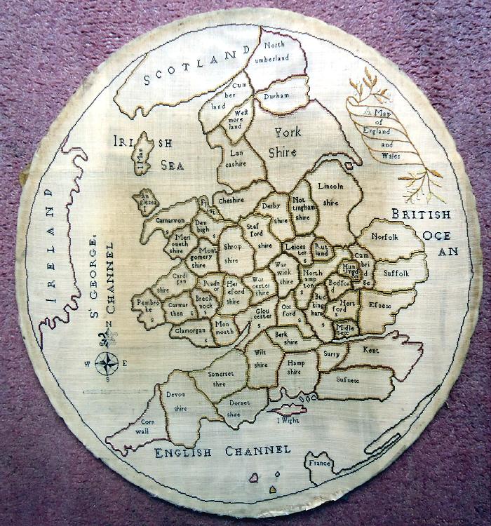 Back at the fair, we really got into our stride on the second day. A signed Tom Stoppard, a nice late Trollope in cloth, Somerset Maugham, Evelyn Waugh, P. G. Wodehouse, the UK edition of this week’s hot topic, ‘To Kill a Mockingbird’, and a whole bunch of folding maps from Arthur Hook – including this wonderful old sampler. I found a lovely book by Evelyn Sharp that the Guv’nor was thrilled to bits with (see his post called ‘Tracking Miss Banks’ for his account of this extraordinary ‘rebel woman’). Best of all, I managed to stop him buying any more of those weird and totally unsaleable books he likes to blog about – you know, what did he call them the other week, ‘The Books You Never Knew You Didn’t Want’ – well, apart from the one he bought because it was bound in calf in a rather unsettling shade of deep pink, that is. He claims that isn’t actually why he bought it, but he hasn’t yet offered any more convincing reason.
