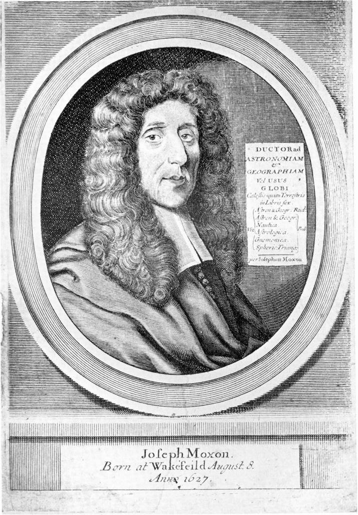 In 1662, Moxon petitioned the King, “your petitioner with great industry, travell, and expence, hath found out ye perfect way of makeing globes, sphears, mapps, and sea-platts” and now seeks “to benefit his native country with ye most exact and perfect waggoner in the English tongue … so much necessary for our English seamen”. He asked for royal encouragement, which was granted, and Moxon was sworn in as Hydrographer to the King, “for the making of globes, maps and sea-platts”.
