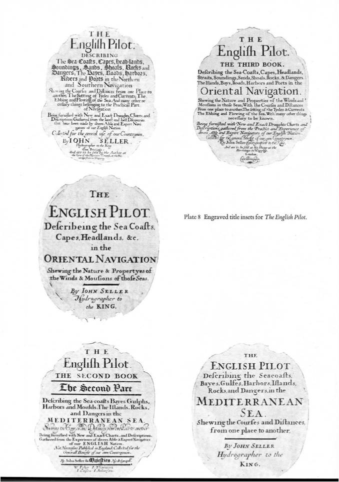 The first volume was ready by 1671 and Seller in his dedication to the Duke of York reiterated the old reliance on Dutch material: “we must see no further than their books direct us, nor how to avoid a shelf without a forreign pilot … none hath hitherto undertaken it … I thought it my duty, for the service of my countrey, to adventure on this great charge and trouble”. Although admitting that the work “hath the similitude of their [Dutch] Waggoners, which in all respects cannot be avoided, yet I have not made them presidential … but have principally observed, throughout the whole work, the informations and instructions of our ancient and modern navigators, to some of whom I am greatly obliged for the readiness in imparting what their own observations had acquainted them withal, and doubt not but it will be the continued practice of all ingenious mariners, still to communicate towards the perfection of a design so useful and necessary”.