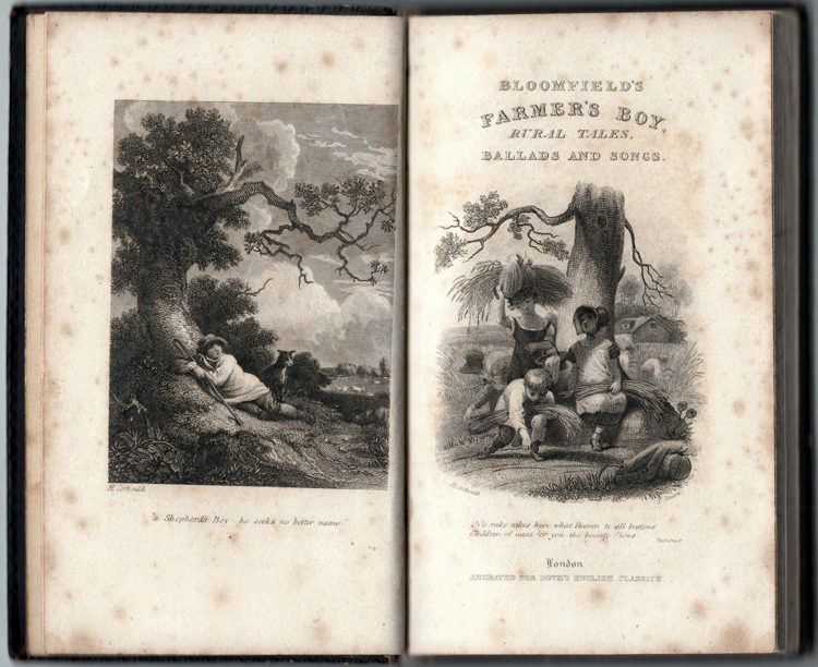 A pocket edition of Robert Bloomfield’s “Farmer’s Boy”, together with his “Rural Tales”, bringing together the peasant poet’s best-known and most successful works, originally published in 1800 and 1802 respectively, and both best-sellers in their time. This edition also contains a ten-page memoir of the author, who died in 1823. Evidently published within a few years of that, the volume is bound in an absolutely contemporary full black calf – a sweet and very pleasing little binding. And it cost considerably less than I spent on last night’s supper. It is something that never ceases to amaze – how many genuinely interesting books can still be bought for so very little. This is a little fragment of the past, a perfect example of what it is, nigh on 200 years old, and quite beautiful in itself.