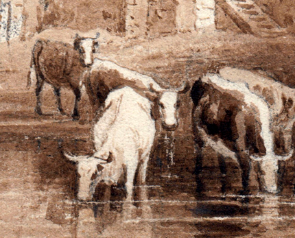 Illustrated are two little sketches by the prolific landscape painter Henry Gastineau (1791-1876), who exhibited at the Society of Painters in Water Colours every year for a period of nearly sixty years, right up to the time of his death at the age of eighty-five – some 1,300 pictures in all. He was also responsible for hundreds of these little sketches for the publishers of the view-books and series of views so popular from the 1820s to the 1840s – especially views of Wales, but also of most parts of England, with occasional forays to continental Europe.
