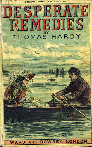 Just as Lascelles Abercrombie and his contemporaries were my route into modern first editions, so early books on London became my passage into genuinely antiquarian material. But I learnt something else in my first week which has always stayed with me. Rooting about in the back of the shop on only my second or third day I came across a nineteenth-century edition of Thomas Hardy — a cheap yellowback edition for railway reading. I can’t now recall which Hardy it was — not this Desperate Remedies, something even more sentimental — but I looked at it almost in shock. I had studied Hardy at school and at university, believed I knew his work, and greatly admired it. But I had only ever read him in the austere and academic paperback texts of the 1950s and 60s. But here he was got up in a soppy yellowback cover just as if he were some sort of romance writer for Mills & Boon. I was appalled. I was outraged. How could you do this to a “serious” writer on a university syllabus? But I think what hurt most was that deep down I recognised that there is actually something a bit Mills & Boonish about Hardy’s novels — and, more than that, this was probably why I liked them. A chastening experience — the gulf between “serious” literature and what we might call “light reading” is not always as profound as we like to pretend.